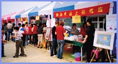 【金门讯】2004年5月8日,金门同修参与金门县“长期照护博览会”的义卖活动。当日,人潮汹涌,师父的样书、新闻杂志和画作不仅是活动的焦点,而同修所义卖的萝卜糕、鲜奶糕和果冻也同样造成抢购。