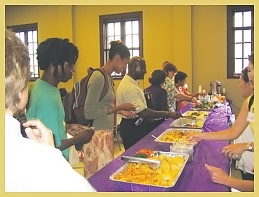 同修们在讲座会场上分发样书,向来宾解说师父的教理,并播放师父的开示录影带,以及招待来宾享用素食餐点。许多来宾对素食的美味赞不绝口,有些人甚至不敢相信那是纯素的餐点。在师父的指引与加持下,有许多人询问观音法门,其中有些来宾后来也学习方便法。