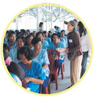 收到Klongphai特殊監獄的核准函後,同修在11月28日前往該處提供援助,慰問約100位大多無親人照顧的年老女性獄胞。活動開始時,我們先問候大家,並分享師父的甘露法語,接著開始分發各項實用的物品,包括保暖的衣物、襪子、牙刷、牙膏、即溶麥片、印有師父甘露法語的慰問卡,以及介紹師父與觀音法門的傳單等。隨後獄胞們觀賞了簡介師父的影片以及師父的講經錄影帶《自由的真諦》。一位獄胞看完錄影帶之後表示,她感覺師父好像在對她開示,並正好說中她的心坎。同修也分送師父的經書與講經DVD給有興趣的獄胞,並捐贈各種語文版本的樣書給監獄圖書館。