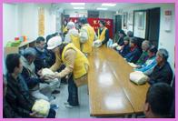 不久,台北小中心又接獲社會局轉達的訊息:雖然來自各界的關懷已經給予最貧困的家庭許多援助,但仍有一些孤苦的獨居老人被忽略了。元月21日一大早,同修準備了一些過冬的暖包、保溫瓶、米、營養品及師父的新聞雜誌,在社工人員和一位熱心長者的陪同下,挨家挨戶探訪萬華區十多位獨居老人,給予物質上和精神上的幫助與關愛。