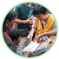 在隨行一位懂得坦米爾語的師兄協助下,我們從路上的居民口中得知,25公里外有一處安置了150戶人家的急難營已面臨斷糧的困境,便立即趕往鄰近的城鎮採購麵包和餅乾,漏夜分送給災民。隔天,我們又採購了一批餐具和食物,發送給災民,災民收到時都感激萬分。
