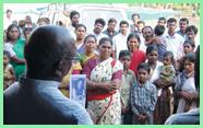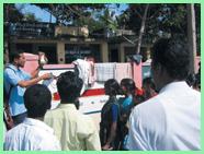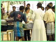 往南的同修跋涉了大約300公里,抵達坦米爾納度省最南端的肯尼亞庫麻理(Kanniyakumari)地區,當地有15個村莊遭到海嘯侵襲。其中卡迪亞帕塔那村(Kadiapattanam),每戶家庭只分配到5公斤的白米,因此有1800戶家庭糧食不足。在評估了他們的需求之後,我們分送給每戶家庭10公斤白米、5公斤豆子、1公斤蕃茄和茄子。另外在波里亞米拉村(Periavilia),我們提供文具用品和學校制服的布料給許多學童,以滿足他們的需要。