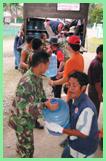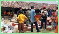 30日起,五名雅加達同修帶著一批藥物抵達大亞齊市與當地二位同修會合,一連數天,同修跑遍了大亞齊市各處的災民聚集所,發放米、米粉、甜食、巧克力、飲水等食品。災民看到同修送來賑災物資,都非常高興,這是他們經歷了大災難之後,初次感受到外界對他們的關愛。當地軍人和災民受到感動,也一起協助賑災品的發放工作。入夜後,同修一行人繼續前往其他災民聚集地,發放棉被及保暖衣物給災民。