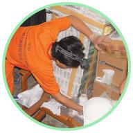 抵達大亞齊市的據點後,同修將師父的法相懸掛起來,並播放師父的佛讚。奇妙的是,當師父法相掛起來後,大家立刻覺得清涼許多,原本瀰漫四周的屍臭味也沒有了,好像有一層防護罩將同修與外面隔開。接著,同修分兩組行動:一組協助包紮傷患;另一組由當地紅十字會引導發放物資,並進行醫療探訪,以了解災民的需要。發放物資的隊伍一路將衣服、拖鞋、餅乾、礦泉水、大米、泡麵、牙膏、牙刷、香皂、綠豆、蚊帳、內衣及女性衛生用品等物資,分送至大亞齊市附近的災民收容所與營站。