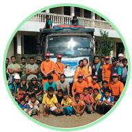 12月26日下午,棉蘭與雅加達同修由新聞得知海嘯重創亞齊地區後,即著手採購瓶裝礦泉水、牛奶、米、便當、藥品、全新衣物等物資,27日連夜運送到羅斯馬威市(Lhokseumawe)。再由兩位棉蘭同修與一位親人、連同當地司機共三人,駕駛一部轎車及一輛貨車載運所有物資與大量汽油,由羅斯馬威市一路直驅大亞齊市(Banda