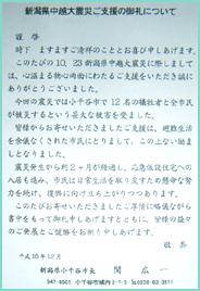 2004年10月23日新瀉縣中越地區的大地震中,小千谷市內計有12人不幸罹難,全體市民因震災遭受極大損失,承蒙貴會於本市遭逢震災之際,給予精神、物質等方面的溫馨援助,由衷感激。