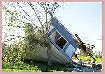 當救援隊的車子暫停在通往熱帶島嶼公園的路旁時,很驚訝地目睹到活動屋社區滿目瘡痍的慘況。不用說,同修們立刻親切地問候每一戶災民,並分送物資給他們。一位男士看到同修親手拿著師父的禮物送給他時,內心非常感動,無法置信地說道:「哇!你們是第一批來到此處提供援助的人!真是感激不盡!」