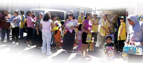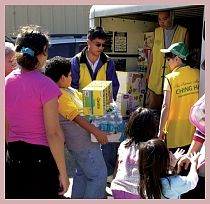 結束棕櫚灘的救援工作,在回程的路上,同修們在一處災區稍作停留,當地有數千位遭受颶風摧殘的貧困農夫急需救援。雖然天色已暗,但當地災民不分老幼都耐心排隊,等候領取救援物資。完成了這一站的賑災工作後,救援隊才打道回府,雖然時間已經很晚了,但所有參與工作的同修一想到師父的愛心禮物帶給很多災民無比的快樂,就感到欣慰不已。