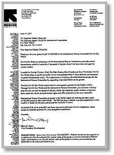 為支持達佛地區的人道援助工作,清海無上師捐贈了20萬美元給「國際救援會」及「坐視要管」組織,由我們世界會會員將支票轉交給傑瑞•溫楚柏,他是一位電影製作人以及「坐視要管」的共同創辦人。溫楚柏先生表達他的感激,並表示這筆捐獻將會拯救許多蘇丹人的生命。 「國際救援會」的蒙莉莎•溫克勒(Melissa Winkler)說,像達佛這種困苦地區,20萬美元能給予達佛人民非常長遠的幫助,那裡的人民急切需要醫療協助、教育支援、庇護所、乾淨的水與公共衛生設施。她說︰「我們非常感謝所有參與支援達佛的人士,像是清海無上師。他們的貢獻將帶來極大的幫助,並為那些身處絕境的民眾,提供急需的人道援助。」 清海無上師關愛所有的眾生,在她慷慨的物質援助之中,還有她的無上加持,為蘇丹最需要幫助的靈魂,帶來安慰、和平與希望。