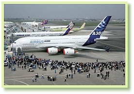 在今年的巴黎國際航空展(Paris International Air Show)中,飛機製造商空中巴士公司的代表表示,該公司最新型、最大的飛機,能源效率也最佳。這種空中巴士A380超級巨無霸客機,所設計的載客量約為五百五十人。為因應全球日益關注的排碳量議題,各航空業者也已加快腳步響應環保。空中巴士公司表示,A380客機已幾乎符合歐盟所訂定的2008年二氧化碳排放量標準的一半。(第282單元)