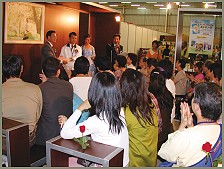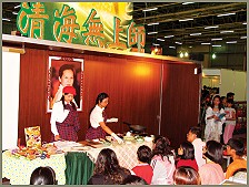 我们摊位特别设计成两面开放的动线式空间,并设有舒适的阅读区,可供来宾坐下细细品读师父的出版品,活动期间,时时可见读者闭目陶醉于摊位上所播放的师父创作乐曲中。首尾两日的心灵飨宴,由美丽的模特儿穿着天衣绕场展示师父的灵性好书,配合主持人简洁有力的介绍,颇获现场来宾好评,参观人潮将我们摊位四周挤得水泄不通。展示活动尚未结束,摊位的柜台早已挤满购书的民众。此外,我们也透过“蚊子姊姊说故事及有奖征答”、师父创作乐曲音乐演奏会等多种动态的方式,向大众介绍师父的出版品,并举办《无上家厨》示范教学、名人好书分享座谈会等精采的活动。