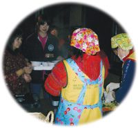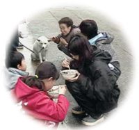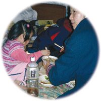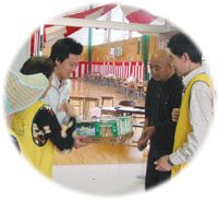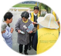 同修先後前往偏遠的小學、福祉中心、托兒所及其他幾處不同的地點,供應烏龍麵。雖然當地災民的人數往往比預先估計的人數多出幾倍,但七位同修總能在短時間內烹調出色香味俱全的烏龍麵,供大家享用。對那些只能以乾麵包和速食品充饑的災民而言,能夠享用到菜色這麼豐富又熱騰騰的麵,大家真是打從心裡歡喜!許多人邊流著感動的眼淚邊吃著麵,還不停地讚歎說,從沒吃過這麼色香味俱全的烏龍麵,這輩子絕對忘不了!一位臥病不起的老先生說:「地震以來第一次讓肚子這麼滿足,連身體狀況都變好了。」還有一位失去體力、臥病在床的老先生,他的媳婦拿著鍋子很客氣地說:「我公公從地震後就什麼也吃不下,但他說若有烏龍麵的話,或許可以吃得下一些,這是他兩、三天以來第一次用餐,不知道還可不可以再給我一些?」我們深深了解到師父為什麼引領我們來到這些地方。
