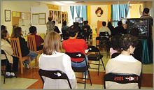 弘法講座前一週,各項籌備活動已熱烈展開,同修四處發送傳單,並在報上刊登廣告,因此許多民眾紛紛來電詢問相關的訊息。講座當天,整個小中心整理得煥然一新,並以鮮花妝點得生氣盎然。當播放師父講經錄影帶時,會場充滿昇揚、愉悅的氣氛。許多來賓的疑問已從師父開示中得到解答,因此提問的人並不多。隨後,有一些來賓留下來學習方便法。