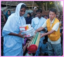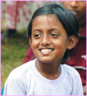 在一處臨時的救難營裡,我們看到一個四個月大的男嬰。這名男嬰在海上漂浮時被人救起,大家便稱他為「幸運男童」。由於受到海嘯的驚嚇,男嬰看到人時總會不自主地抽搐,不過當他看到我們時,既不哭也不怕,當我們抱起他時,更是露出開懷的笑容!