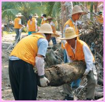 17日,救援隊開始協助災區的復原工作,清理散落四處的瓦礫及斷垣殘壁。由於多數災民仍處於驚嚇的狀態,加上沒有任何工具可以清理房子,因此對於救援隊的熱心協助,感到萬分驚喜並深表感激。有些村民甚至爬上椰子樹,採摘椰子送給我們。對於來自北半球的韓國人來說,這實在是再好不過的獎賞了。