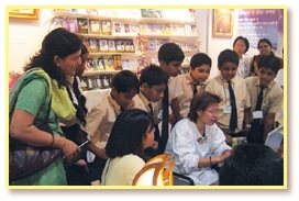 書展揭幕前一天,我們在會場佈置攤位的過程中,以及工作結束準備離去時,一直都有許多其他單位的工作人員向我們索取印度文的樣書。印度人總喜歡稱呼女性明師為「聖母」,我們也很感謝清海聖母無所不在的加持力,時時引領渴望的靈魂回歸故鄉。這些工作人員不僅非常誠心,而且在書展期間也幫了我們不少忙。