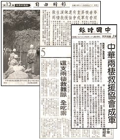 Note: The inaugural ceremony of the Chinese Amphibious Rescue Association and its amphibious rescue drills received extensive coverage in the three major Formosan newspapers. In addition, Formosa's four terrestrial television networks-Taiwan Television, China Television, Chinese Television, and Formosa Television, as well as cable TV networks such as TVBS-N, Sanlih Television, and Great Love Television, reported on the event in their evening news broadcasts.