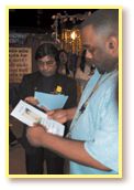 The initiates’ stand, located in a hall visited by thousands of people, featured a large photograph of our beloved Master along with Her beautiful art work, including paintings and Longevity Lamps. One gentleman observing the exhibit admired the Lamps so much that he inquired about acquiring them, and other visitors happily picked up free vegetarian recipes, sample booklets and News magazines.