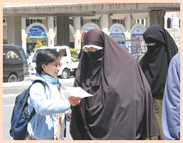 Almost everyone accepted the leaflet and started reading it; many discussed