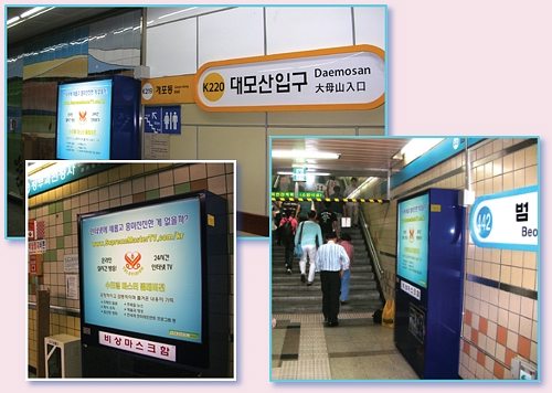 A total of 13 subway stations in Seoul have Supreme Master Television light boxes.