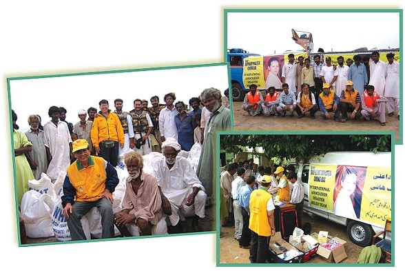 The relief team purchased foods including flour, rice, lentils, oil, biscuits and milk powder in Karachi and distributed them to villagers in Gadab Town, Thatta Town and Sakro Town. The villagers were thankful to our Association and Master for providing them with emergency supplies. The relief team then proceeded to Keti Bandar, one of the worst-hit areas, where we distributed food supplies to the villages that were in dire need of food. We also delivered supplies to some nearby islands – the farthest being four hours away – via boat transport arranged by the World Wide Fund - Pakistan. With Allah’s and God’s blessings,