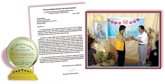 Mr. Lin Bo-Chun, the owner of a car-wash in Zhudong Township, Hsinchu County, Formosa, noticed that many children from aboriginal families have stopped going to school due to financial difficulties, or have fled from home due to problems of being raised by their grandparents. Mr. Lin felt very sorry seeing these children abandoned by society and wandering on the streets. So he started to help them. After conducting a survey among many households by asking questions, he gathered a group of problem youngsters who were seen as troublemakers by their families. Apart from providing them with food and a place to stay, Mr. Lin also took them to school every day, taught them techniques in car-washing, and paid them wages. In eight years, many young people who were previously abandoned by society have benefited from his loving edification. Not only did they complete their studies, but also attained self esteem and a sense of achievement from their work. In commending Mr. Lin’s love and care towards the young people, on August 4, Golden Year 4 (2007), members from The Supreme Master Ching Hai International Association presented the Shining World Leadership Award to him on behalf of Supreme Master Ching Hai. It is a symbol of appreciation from everyone in society for his endeavours in caring for these young persons in desperate need. When receiving the Award, Mr. Lin Bo-Chun expressed his gratitude to Supreme Master Ching Hai and humbly said: “I am merely doing my part as a member of society… Actually, the kids have done nothing wrong. The problem is that the adults in society have never positively acknowledged these youngsters. We must not casually abandon them. Human beings are not saints, and everyone is bound to err sometimes. Don’t put them in jail for three years just for any minor offence. Instead, why not give them a good job, thus allowing them to prove themselves… I hope that the conscientious people of our society will extend greater care to these young people, by giving them opportunities and acknowledgement, and helping them restore their confidence!” When asked about the method of educating this group of youngsters, Mr. Lin said: “First we should try to understand and love them, only then do we have the right to discipline and educate them. At the same time, we should find out what their problems are, and what they want deep in their heart. Only then would they begin to accept my counsel.” He further emphasized that the most important thing is to establish mutual trust through honestly accepting them and loving them.