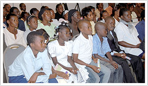 Master’s publications and a Heroine T-Shirt presented by our Association members on behalf of Supreme Master Ching Hai at Le Plaza Hotel in Port-au-Prince. When Master’s appreciation letter to Ms. Joseph was read aloud to the audience, it was interrupted several times by thunderous applause. Ms. Joseph thanked Master for the Award and the wonderful gifts. In a follow-up letter, she expressed her deep respect and admiration for Master’s work and also said, “It is my experience that you are truly a good friend of the Haitian people.” The event encouraged and inspired her to spread the same message of love through her own association, “Organization for the Development of Haut Byenak (ODHB).”