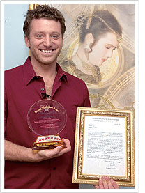 In August Golden Year 6 (2009), on behalf of Supreme Master Ching Hai, our New York Association members presented the Shining World Hero Award to Chad Lindsey, an American actor, who has worked on Broadway and on television shows such as Law and Order. He was even interviewed on the Rachel Maddow Show for saving the life of a person at Penn Station subway stop in New York City.