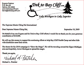 to support his continuing efforts to help Bay Cliff Health Camp and