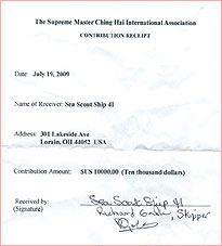 Sea Scout Ship 41 won first place in the Interlux Waterfront Challenge, a nationwide contest promoting projects that enhance the environment. The youngsters developed a device called the “flotsam scoop,” which removes floating garbage from marina or dock areas. The approximately five-pound scooping gadget is a half-bucket made of aluminum mesh attached to the end of a lightweight telescoping handle. The group is now offering the invention free of charge to anyone who would like to use it. The Ohio Department of Natural Resources ordered 21 of them to distribute to their marinas. In developing this tool, the scouts learned a principal that can be applied to other environmental issues, which is “keep it simple.” Richard Gash, the skipper of Sea Scout Ship 41, said, “Oftentimes the solution is staring at you right in the face.” The group enthusiastically thanked Supreme Master Ching Hai for Her generous gift and gave Her one of their team hats. They said the Award would “help spread the word, because all it really takes to make the world a better place is for people to get out and start doing it themselves.” Thank you, Sea Scout Ship 41 team, for your simple and effective innovation that helps restore our coastal and inland waters! Your example is an inspiration for all of us, as everyone can make a positive difference.