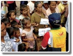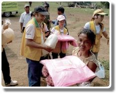 (rice, cookies, water, etc.) and relief supplies (mosquito