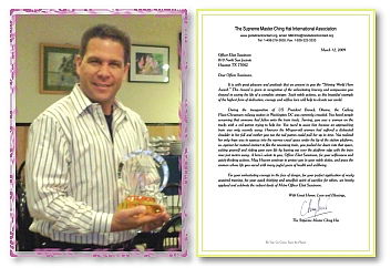 I was shocked and pleasantly surprised by your story of the event. Your story captured the events of that morning very well . . . . Whether watching the story on your “Note Worthy News” telecast or reading the letter you sent, I was surprised at some of the small detail that had been added that gave a whole different understanding about the event, unlike other news sources that covered it. I was watching the “Note Worthy News” segment one evening with my then 3-year-old daughter in my lap. When the spot in the story got to where they mentioned the “Shining World Hero Award,” she turned to me and said, “Daddy they called you a superhero.” I laughed and corrected her and said, “No, that is the name of the award, Shining World Hero Award.” So, thanks in part to you, I have no doubt that in the years to come, when she gets older and she looks back at some of the stories of this event and your award, she will be reminded to do what she can to help others as she walks through life. Officer Swainson further added about the Award plaque: Throughout the year of 2009, I was repeatedly asked if I had ever received the Master Ching Hai award, or some version of that question. Even now, after having received your beautiful acknowledgement, it is still asked about or a request is made to bring it back to work so others can look at it or admire it. Your award created much attention and interest. He also graciously thanked our Association members for their hospitality and sharing an enjoyable evening together. A hero’s salute to you, Officer