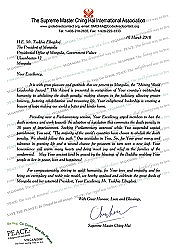 President Elbegdorj has always worked toward a transparent and honest governance, freedom of speech in the media, poverty elimination and environmental protection. At the December 2009 United Nations Climate Change Conference in Copenhagen, Denmark, His Excellency mentioned during an interview with Supreme Master TV that a conversion from livestock raising to vegan farming would be preferable for the environment and for his fellow citizens. In recognition of the country’s outstanding compassionate action in making changes in the judiciary system that allow for greater leniency, fostering rehabilitation and treasuring life, Supreme Master Ching Hai granted the Shining World Leadership Award to Mongolia. The Award was presented to President Tsakhia Elbegdorj on April 23 in his presidential office by our Association members. He graciously accepted this honor and expressed his sincere appreciation to Supreme Master Ching Hai. Our respectful congratulations, President