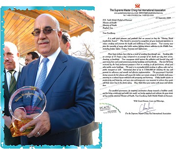 To watch Supreme Master TV’s interview and coverage of the Iraqi Minister of Health’s Award presentation, please visit: http://video.Godsdirectcontact.net/magazine/EE1339.php