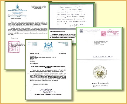 His Excellency President Seretse Khama Ian Khama of Botswana conveyed his appreciation for Master’s positive and encouraging message, saying, “It is true that problems ravaging Africa can be solved by a spiritually enlightened citizenry.”
