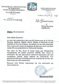 Guinea francs (approx. US$3,377) for relief supplies in Conakry,