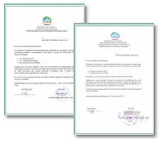 On December 10, 2009, heavy rains destroyed more than 150 houses and damaged others in Buco Zau, Cabinda Province, Northern Angola, leaving nearly a thousand families homeless. Children were sheltered in school classrooms as many neighborhoods were inundated with water from the rising Luali River. With Master’s loving concern and US$11,000 contribution, a relief team from our Douala, Cameroon Center arrived in Cabinda in January 2010, and with the help of a local official, traveled to the disaster area. They purchased much needed food, clothing, blankets and mattresses, and arranged for two truckloads of relief materials to be delivered. With the assistance of local social welfare workers, the materials were quickly distributed along with SOS flyers. Mr. José Macaia, the Deputy Municipal Administrator of Buco Zau, wholeheartedly thanked Supreme Master Ching Hai, as well as explained to the recipients that She cares for them very much and is helping them through God’s love. Mr. Macaia also sent an official thank you letter to Master.