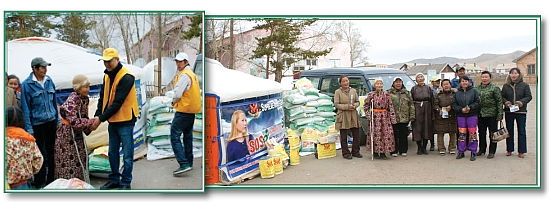 Following a summer of drought, Mongolia faced an unusually severe winter in January. While daily seasonal temperatures are normally minus 15 to minus 35 degrees, they dropped to minus 40 or more this year. Nearly 200,000 residents who already live in less fortunate circumstances were in critical danger of food shortage, especially since snow-covered roads blocked many transport routes to the rural provinces. Heavy snowfall and blizzards also destroyed houses and took the lives of many farm animals.