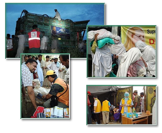 Hearing news of the disaster, Supreme Master Ching Hai conveyed Her utmost concern and prayers. She also offered altogether US$115,000 in funds to support the relief operation and medical treatment carried out by our Association members from Indonesia and Formosa (Taiwan) to help the afflicted. Our Association’s relief team from Formosa reached the affected area on August 5 and with the help of All Green, 885 food packages containing rice, wheat flour, beans, sugar, salt and vegetable oil were prepared and sent to the extremely underserved in Naushahro Feroze District. As if hearing the prayers of the people in agony, Master specially instructed another relief team trained in medical and dental care to go and attend to their needs. The team arrived at Karachi on August 19 and Mr. Shah from the Red Crescent Society and Mr. Abid from All Green informed them that medical treatment was desperately needed due to un-hygienic water and food. Our Association members then spent the next three days working from morning to evening treating many patients at an elementary school and later in a shelter. They also provided 750 food parcels and 200 tents to the Indus. From August 27 to September 10, our fellow initiates from Indonesia carried out relief work in the Charsadda and Karachi districts where some people in remote villages were still struggling to return to their normal lives almost a month after the floods. In Charsadda District, the team working together with Mr. Ali Imran from NAWA (Noble Aims Welfare Association) offered medical services and delivered relief packages containing food, soap and detergent to 2,000 affected families who had not received any prior aid. The team would like to thank Mr. Skandar Shairpao, a member of Charsadda Council, and Mr. Aftab Ahmed Khan Shairpao, the son of the former Pakistani Minister of Defence, who not only generously allowed them to use his property to distribute relief items but also provided security escorts throughout their mission there. On September 4, our Association members arrived in Karachi. In cooperation with Mr. Kanwar Waseem, the Sindh Provincial Secretary of the Pakistani Red Crescent Society (PRCS), and Syed Ali MD, the head of PRCS Sindh medical aid operation, they provided a total of 8 emergency kits, each containing medical supplies for 500 people to various existing medical operations. Partnering with PRCS, the team offered free treatment for many refugees in the camps around the city of Thatta. While handing out 2,400 1–liter bottles of water to the most remote refugee camp and the needy people in the vicinity, they were touched to see a little boy with a peaceful face share all his bottled water with other kids.