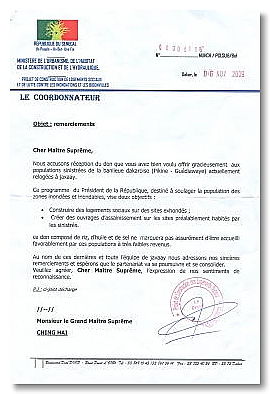 letter of thanks to Supreme Master Ching Hai. May God bless Senegal