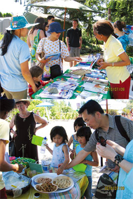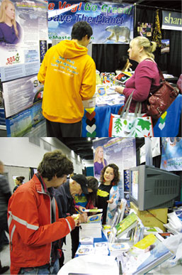 [Vancouver BC] From May 28 to 30, Golden Year 7 (2010), the 6th annual Vancouver Sun Sustainable Living Expo, or EPIC (Ethical Progressive Intelligent Consumer), was held at the Vancouver Convention Centre. The event attracted more than 300 exhibitors, highlighting eco-friendly products and services ranging from green wedding planning to food, fashion, health, home and transportation. Many big, name-brand companies including Wal-Mart participated for the first time. Our local Association members managed a booth to introduce the importance of the vegan diet to the visitors through displaying Master’s various publications plus Dr. Will Tuttle’s book The World Peace Diet. Many people learned about the benefits of the plant-based diet for our health and the environment. The Association members felt Master’s light and blessing permeating the entire venue and are thankful for this opportunity to share this vital message. Serving at the Outdoor Green Festival