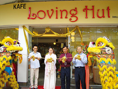 [Johore Bahru] On April 25, Golden Year 7 (2010), the first international vegan chain restaurant, Loving Hut, was officially opened in Johore Bahru State, Malaysia, serving animal-free delicacies to its citizens and advocating the vegan lifestyle. The restaurant is conveniently located at Taman Sentosa, a busy commercial district with easy transportation access. Elegantly decorated, the restaurant is ideal for friends and family gatherings. Apart from displaying Master’s best-selling books for customers to read freely, SOS climate change videos are also played constantly so that the guests can enjoy the delicious vegan food and, at the same time, learn about how the plant-based diet can help our Earth. Through advocating the loving vegan diet, it's hoped that more people will adopt this compassionate and sustainable lifestyle. Participating in an Environmental Protection Exhibition to Increase People’s Awareness towards Global Warming On June 13, the Sin Chew Daily, a newspaper with the highest circulation in Malaysia, held an environmental protection carnival at Foon Yew High School, Kulai Branch School. Our Johore Bahru Center also participated in this grand event. Apart from exhibiting related informative material and video footages, our fellow initiates also distributed SOS Climate Change flyers and organized a charity sale of the global warming DVDs, the proceeds of which were given to the school to help with tuition fees for students in need.