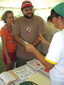 [Puerto Rico] On June 27, Golden Year 7 (2010), our local Association members participated in the Vegetarian and Meditation Day held in the beautiful folkloric town of Croabas in Fajardo in northeastern Puerto Rico, to share the “Be Veg, Go Green, 2 Save the Planet” message. They were thrilled to discover that a lot of people were already aware of the environmental impact of the vegan diet and had already started to choose a more eco-conscious lifestyle. Many of them have visited the Loving Hut restaurants in various locations and watch Supreme Master TV. An environmentalist from the city of Ponce, who stopped by the booth to pick up more information regarding global warming, indicated that she is ready to become a vegetarian and has recently bought her first soy products. An eleven-year-old girl said that she likes to recycle and does many things to help the planet. She is in the process of becoming a vegetarian as well. A mother of four children, who is also a pharmacist with a Masters degree in Nutrition and Holistic Health, is teaching vegetarian cooking classes in the city of Guaynabo. She also offers courses in vegetarian nutrition, in her work with cancer projects.