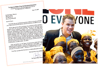 In recognition of this noble enterprise, Supreme Master Ching Hai contributed $50,000 to Water.org, which our Missouri Center initiates had the privilege to present to Mr. Damon at their headquarters along with a letter of salute from Supreme Master Ching Hai and a selection of Her recent publications on October 12, Golden Year 6 (2009). Our Association members were welcomed graciously by Chief Operating Officer Mike McCamon, Senior Communications Manager Nicole Wickenhauser and other staff at Warter.org, who were deeply touched by Master’s generosity and love. May Heaven bless Mr. Matt Damon and all those at Water.org for their