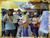 Di pagi hari tanggal 9 September, pameran buku dibuka di Pusat Kebudayaan Danlan oleh Chen Yi-zeng, direktur Perpustakaan Shiding. Di antara para tamu yang terhormat adalah Wali Kota Ye Rong-hua dari Kota Shiding, Direktur He Wen-qing dari Perpustakaan Daerah Taipei, Direktur Gao Su-zhen dari Pusat Kebudayaan Danlan, para anggota dewan lokal, serta beberapa perwakilan dari Center Taipei. Wali Kota Ye berterima kasih kepada Asosiasi Internasional Maha Guru Ching Hai karena telah memberi dukungan dan membuat acara ini penuh dengan suasana rohani yang membuat perubahan luar biasa. Banyak tamu tertarik pada gerai pameran kami, dan mereka sangat tersentuh oleh lagu Guru yang puitis dari DVD yang ditampilkan di area pameran. Sebuah tim besar inisiat menerima tanggapan positif yang melimpah ketika menyebarkan kipas, map dokumen, dan alas makan serbaguna ‘Cara Hidup Alternatif’ di jalan sekitar yang terkenal akan pelestarian sejarah kebudayaannya. Nona Yang, seorang guru di pusat penitipan anak setempat, meminta 50 alas makan untuk murid-muridnya dengan harapan dapat menggunakan alat itu untuk mengajarkan anak-anak agar mengasihi dan melindungi binatang, serta untuk mengembangkan konsep yang benar tentang pola makan yang sehat.
