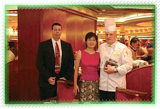 Saat di kapal, karena kelompok besar kami semuanya bervegetarian, maka hal ini menarik perhatian kepala koki yang datang menyapa kami pada malam pertama dan dengan senang menjanjikan masakan vegetarian tambahan khusus untuk kami selain menu yang sudah ada.