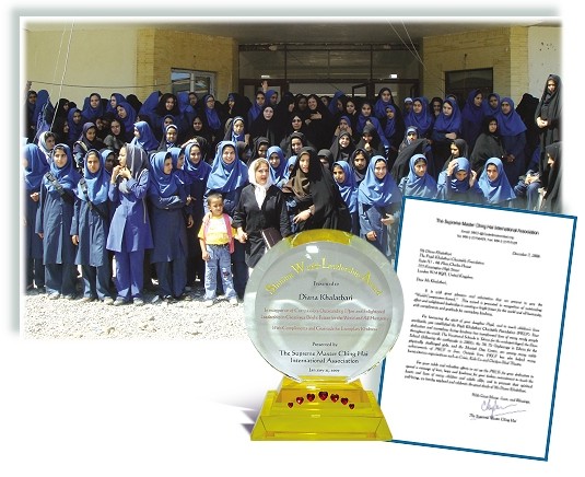 다이애나 칼라트바리(Diana Kha- latbari)는 끝없는 활동력과 결단력, 열정으로 어려운 사람들에게 희망과 자비를 가져다주기 위해 지칠 줄 모르고 일하는 비범한 여성이다. 황금시대 4년(2007년) 9월, 그녀 또한 ‘빛나는 세계 지도자상’ 수상자가 되었다. 정말 그녀에게 꼭 맞는 상이었다. 1998년, 칼라트바리 여사는 딸 포프리를 기리고 아울러 전세계 어린이들을 돕고 지원하기 위해 ‘포프리 칼라트바리 자선재단(Popli Khalatbari Charitable Foundation, PKCF)’을 설립했다. 재단의 모토는 ‘어려운 사람들에게 손을 내미는 이에게 복이 있을지어다’이다. PKCF를 통해 다이애나는 전세계의 각종 단체의 많은 프로젝트에 기금을 제공하고 추진했다. 이란에서는, 2003년 지진 이후 재건축된 밤(Bam)의 하킴 파라비 직업학교(Hakim Farabi Vocational School)를 비롯한 여러 학교들이 PKCF의 지원을 받았다. 또한 PKCF는 미국 로스앤젤레스의 ‘쉬라이너 어린이 병원(Shriner’s Hospital for Chindren)’, 잠비아의 ‘의료 프로젝트(Heal Project)’, 난민 아동에게 스포츠와 교육의 기회를 제공하는 유엔 기구 ‘나인밀리언(ninemillion.org)’ 등 많은 단체에 지속적인 기부를 하고 있다. 황금시대 3년(2006년) 12월, 칭하이 무상사는 PKCF의 활동을 지원하고자 미화 만 달러를 기부하셨다. 다이애나는 감사 편지에서 이렇게 썼다. “당신의 기부는 우리 재단이 올해의 달성 목표에 상당한 영향을 주셨습니다. 이에 대해 진심으로 감사드립니다.” (뉴스잡지 178호 참조) 다이애나는 작년 9월 칭하이 무상사 국제협회로부터 ‘빛나는 세계 지도자상’을 받았다. 그녀는 스승님께서 관대한 인정에 겸손한 모습으로 감사를 표하며, 자신은 스승님을 이 세상에 평화와 사랑을 가져오기 위해 일생을 바치신 참으로 고귀한 분으로 존경한다고 말했다.