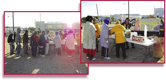 휴스턴은 텍사스 주에서 노숙자 비율이 가장 높은 곳 중 하나다. 그들 중 상당수가 2년 전 뉴올리언스에 덮친 허리케인 참사를 피해 온 사람들이다. 황금시대 4년(2007년) 12월 16일, 휴스턴 센터 동수들은 시내에서 노숙자들을 위한 연례 선물 나누기 행사를 열었다. 우리는 또한 맛있는 채식 샌드위치와 뜨거운 커피, 생수, 크래커, 맛있는 과자도 대접했다. 노숙자들은 웃는 얼굴로 인사를 건네며 우리를 환영해 주었다. 어떤 친구들은 다음과 같이 말했다. “여러분이 다시 찾아올 줄 알았어요. 줄곧 기다리고 있었어요.” “여러분 단체는 우리에게 너무나 잘해 줍니다.” 인근 보호 시설의 직원은 동수들이 마련한 채식 음식을 보고 자기가 먼저 스승님의 이상과 신념에 대해 묻기 시작했다. 이렇게 해서 동수들은 스승님의 가르침을 소개할 기회를 갖게 되었다. 그날 온종일 사랑과 영성의 기운이 넘쳐나는 것을 느낄 수 있었다. 선물을 나누어 준 것에 대해 동수들은 많은 인사를 받았다. 그러나 우리는 이 모든 것을 스승님께 바치고자 한다. 왜냐하면 모든 것은 스승님의 인도와 무조건적인 사랑, 아름다운 은총에서 온 것이기 때문이다.