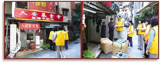 황금시대 5년(2008년) 1월 11일, 지룽 센터는 ‘런안재단(人安基金會)’에서 운영하는 한 노숙자 쉼터에 침낭 20개와 위문금 2만 NT, 뉴스잡지를 기부하고 스승님의 사랑을 전달했다. 지룽의 노숙자 쉼터는 오래전부터 노숙자들에게 음식과 옷, 목욕 시설, 응급 원조, 의료 및 취업 지원과 같은 폭넓은 서비스를 제공하고 있다.
