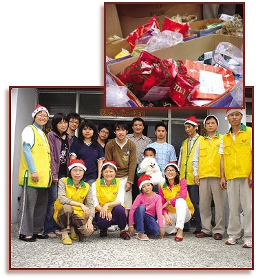 난터우 센터 동수들은 크리스마스이브에 ‘인애의 집’의 작은 천사들과 ‘안양원’의 연로한 보살들을 찾아가 그들과 함께 신의 사랑을 나누었다. 크리스마스의 온정 어린 전통에 따라 동수들은 먼저 작은 천사들에게 소원을 적은 카드를 쓰게 했다. 아이들이 받고 싶어하는 선물을 파악한 동수들은 그에 맞춰 물건을 구입하는 한편 아이들의 성별과 나이에 따라 별도의 깜짝 선물도 준비했다. 아이들은 아름답게 포장된 선물을 받고 뛸 듯이 기뻐했다. ‘안양원’을 방문할 때는 양로원에 요긴한 침구 108세트와 함께 동물들의 사랑을 이 나이 든 현자들과 함께 나누고자 스승님의 신간 『사랑스런 내 인생의 새들』도 기증했다.